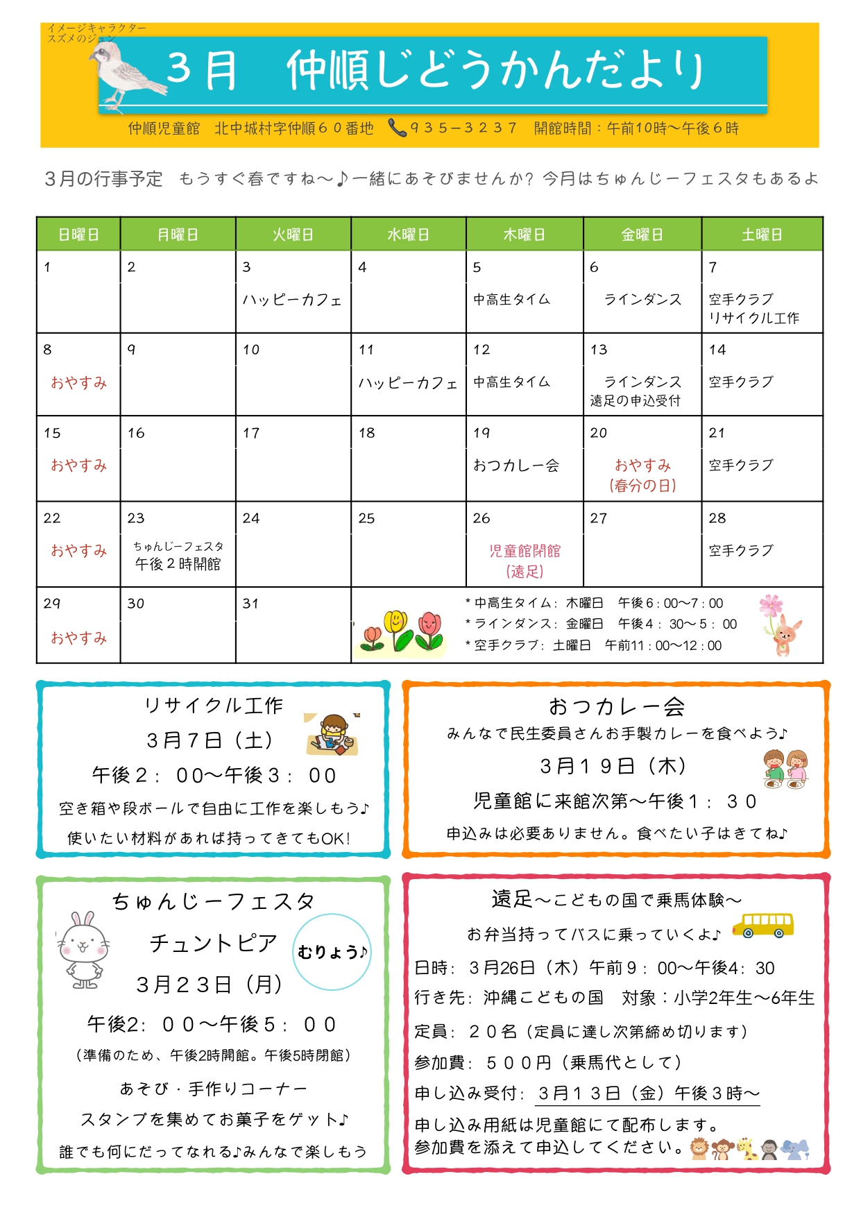 仲順児童館の行事予定やお知らせを掲載しています。